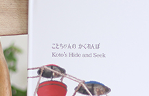 「○○ちゃん(くん)のかくれんぼ」と表紙のタイトルに、日本語と英語のタイトルに名入れされます。タイトルや文中の「ちゃん」「くん」などの敬称はお選びいただけます。