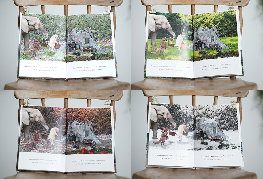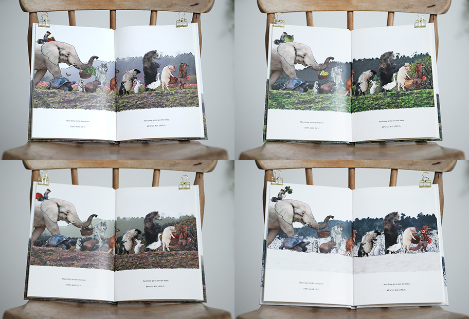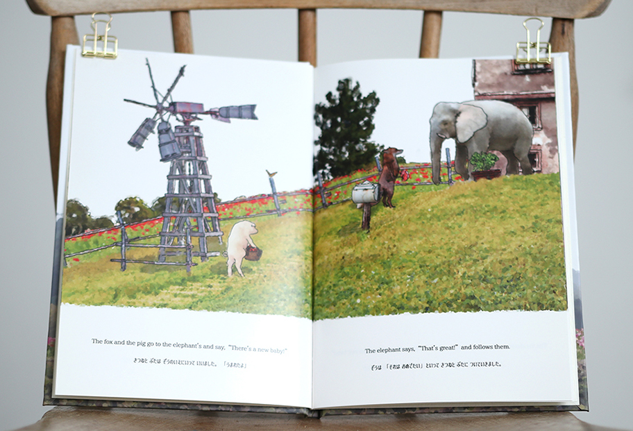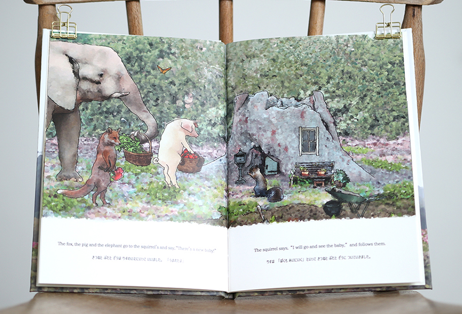 赤ちゃんが生まれたので動物たちが誘い合って会いにいきます。