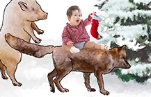 クリスマスツリー絵本では、立ち姿のお子様の写真を加工して絵本に載せます。